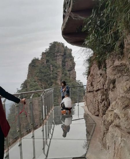 我们当时就去了玻璃栈道,结果他自己恐高,搞了个大乌龙,全程不敢移步,后面是我半拖半背把他从栈道中间弄下来的。