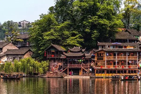 凤凰城,中国最美的小镇。翠绿的沱江蜿蜒穿过古城墙,南华山的绿色山麓倒映在江中。岸边的吊脚楼错落有致,绿树成荫;撑着油纸伞,与爱人在雨中漫步,眼前的景色静谧祥和;在这里,山青水秀,阳光温暖。