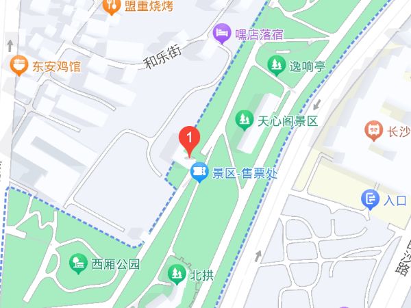 天心阁位于湖南省长沙市中心地区东南角上,城南路与天心路交汇之处的古城墙上,是长沙古城的一座城楼。
