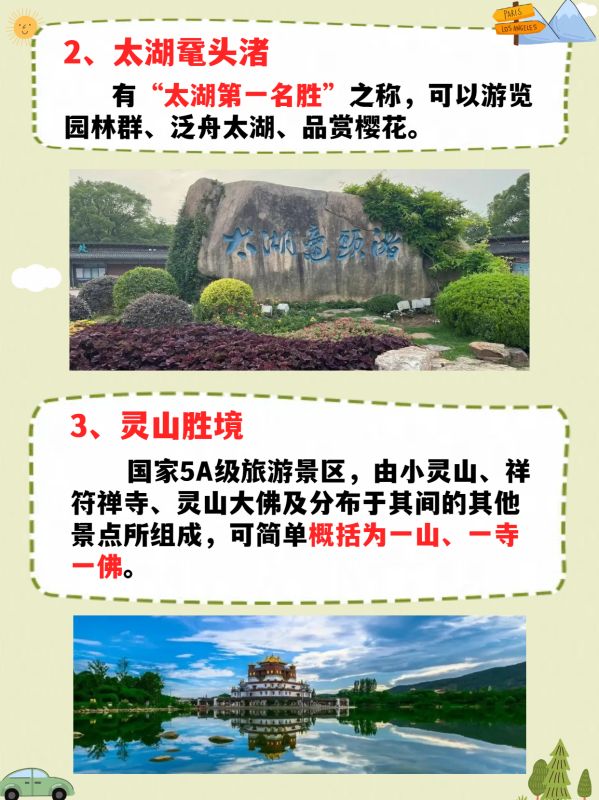 有“太湖第一名胜”之称,可以游览园林群、泛舟太湖、品赏樱花。