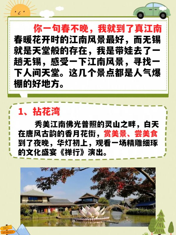 你一句春不晚,我就到了真江南。春暖花开时的江南风景最好,而无锡就是天堂般的存在,我是带娃去了一趟无锡,感受一下江南风景,寻找一下人间天堂。这几个景点都是人气爆棚的好地方。