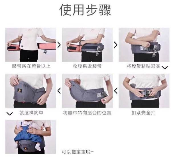 宝宝的脸,可以看着前面,也可以面向父母怀里,很方便。重要的是,孩子坐在腰凳上,比直接抱在怀里要轻松的多。