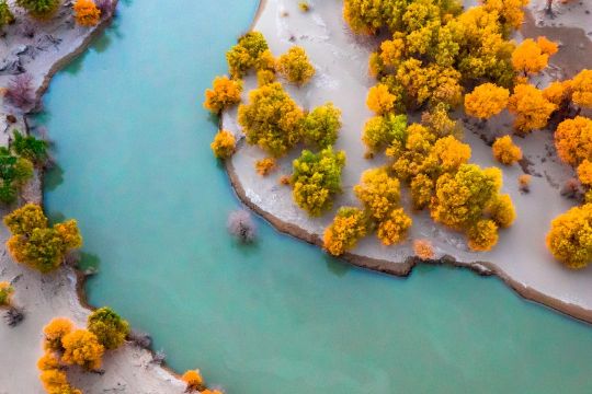 其中,轮台胡杨林被评为中国最美十大森林之一,新疆轮台塔里木河两岸的胡杨林披黄挂金,在胡杨林中还有一条长达十三公里的观光小铁路,沿途风景如临仙境。