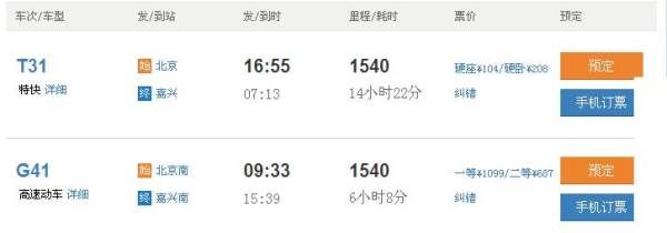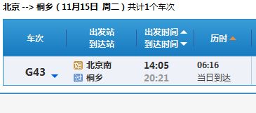 从北京到嘉兴的火车只有两次:上午下午各一次: