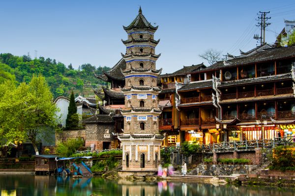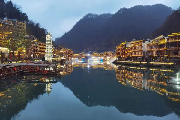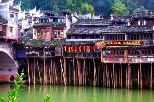 凤凰古镇旅游,推荐游玩沱江、虹桥、沱江吊脚楼、沱江跳岩、万名塔。