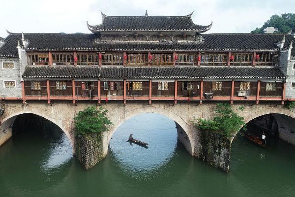 虹桥共有两层,一层为人行通道,游客可以从这里往返于沱江两岸,二层可俯瞰整个凤凰古城,也是古城最佳的观景点之一。