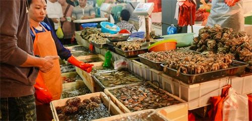 第一市场虽然有些陈旧,但是它的热闹程度却并不为环境所左右,这里海鲜品种齐全,而且价格也实惠。各种高中低端的海鲜都能在这里买到。