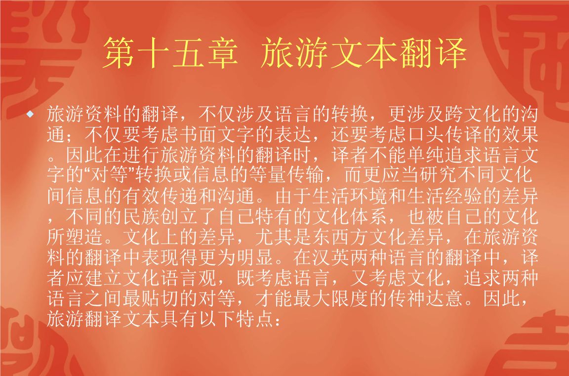 旅游翻译涵盖众多元素,如语言、文化以及历史等,致力于为旅游业提供专业服务。在具体实践中,翻译人员需运用恰当的翻译策略以满足游客需求。高超的语言能力和深入的跨文化理解成为必备素质。