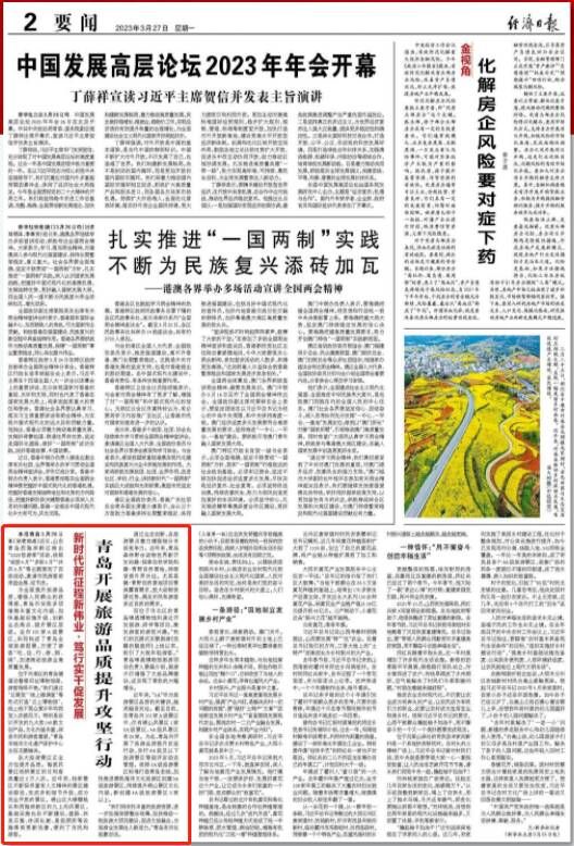 齐鲁网·闪电新闻3月27日讯 3月27日出版的《经济日报》02版,以《青岛开展旅游品质提升攻坚行动》为题,聚焦山东青岛西海岸新区推出“2023悠游季”活动,按照“绽放4月”“多彩5月”“沐风6月”等主题策划了百场活动,邀请市民游客前来逛会展、迎节庆。