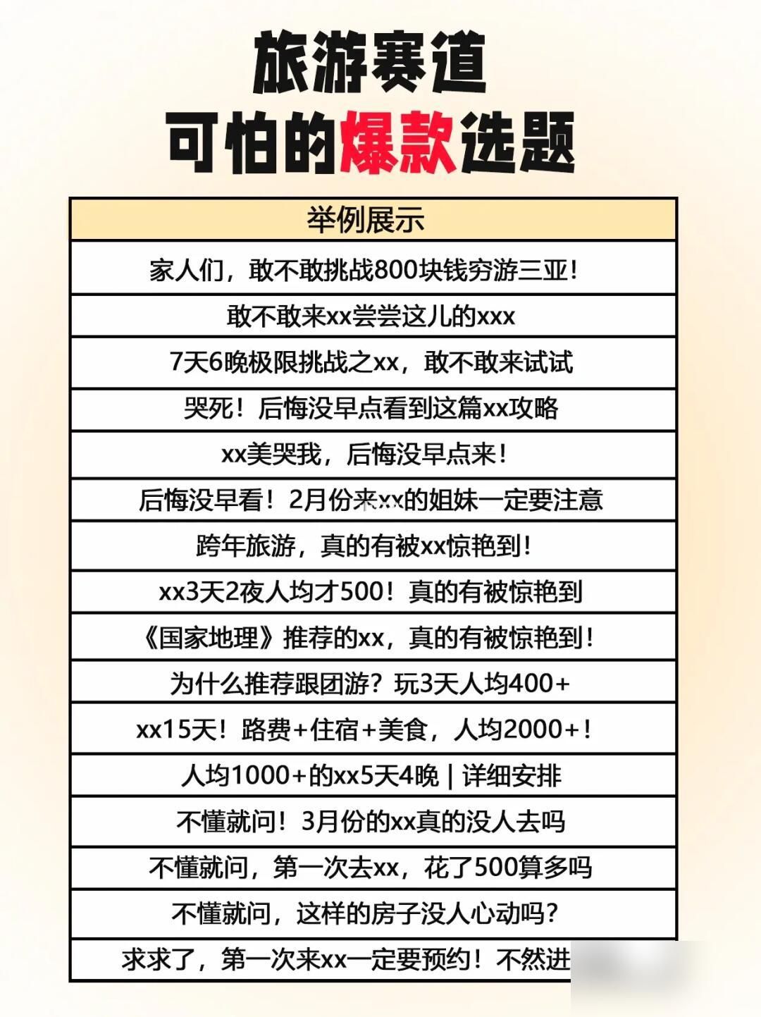我分享了288个旅行社可用的选题方向,各位旅行社老板自行取用