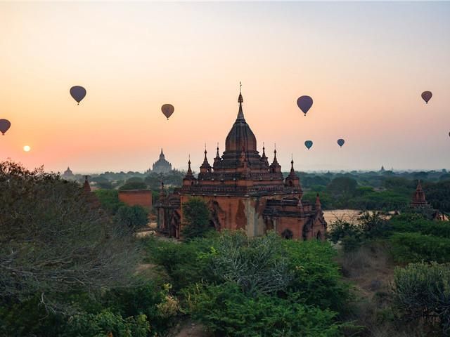 缅甸除了让人心动的旅游价格,还有那最美的夕阳,在缅甸的蒲甘,放眼望去25平方公里的土地上挤满了 2000多座佛塔。身在佛塔林之中自然难以穷极蒲甘的美,那不妨登上平原最高处的平台,守候夕阳下“万塔之城”光晕出的佛光。最受欢迎的活动便是热气球逐 渐离开蒲甘的地表,俯瞰大大小小的佛塔如宝石般铺陈在平原上,看绯红的霞光一直延伸至天际。