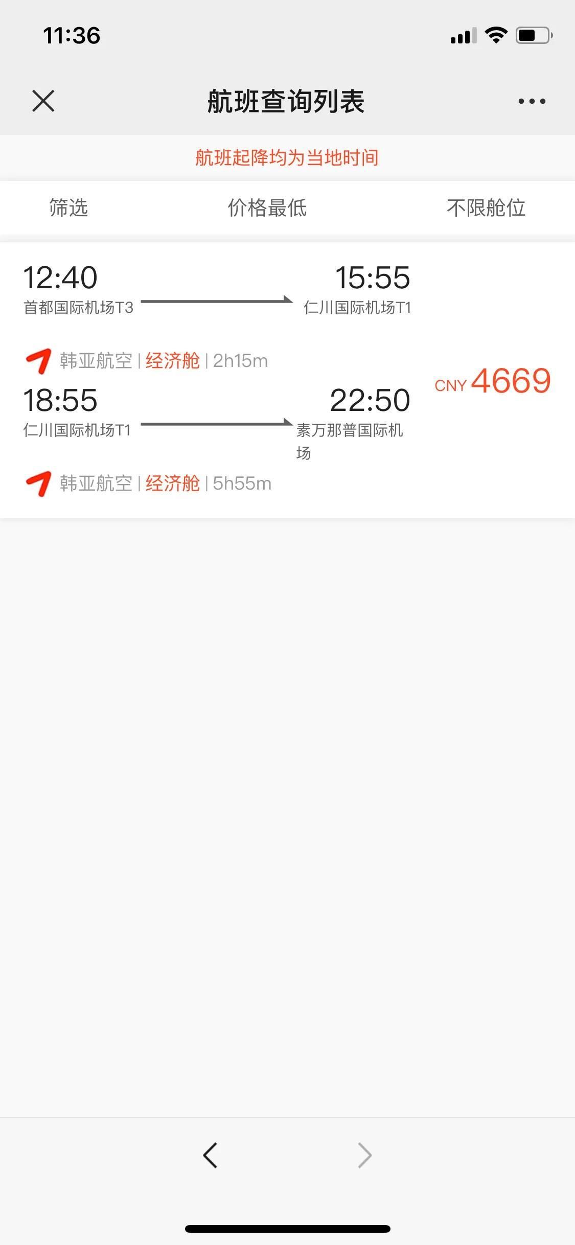北京去曼谷,中途飞到首尔转机。价格略贵。