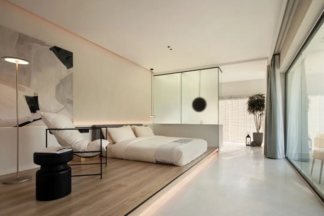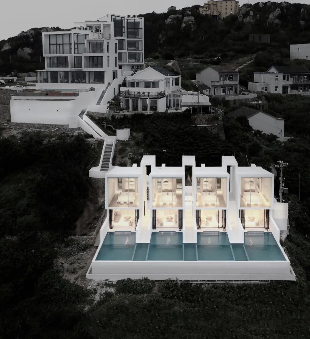 2. 阡陌民宿:位于枸杞岛,选用传统混凝土框架,融入星空元素,空间以白色和原木色为主。