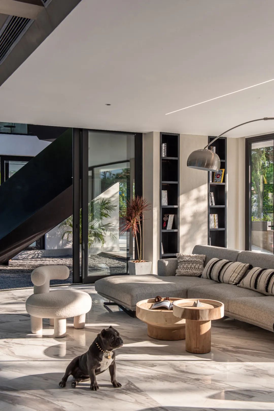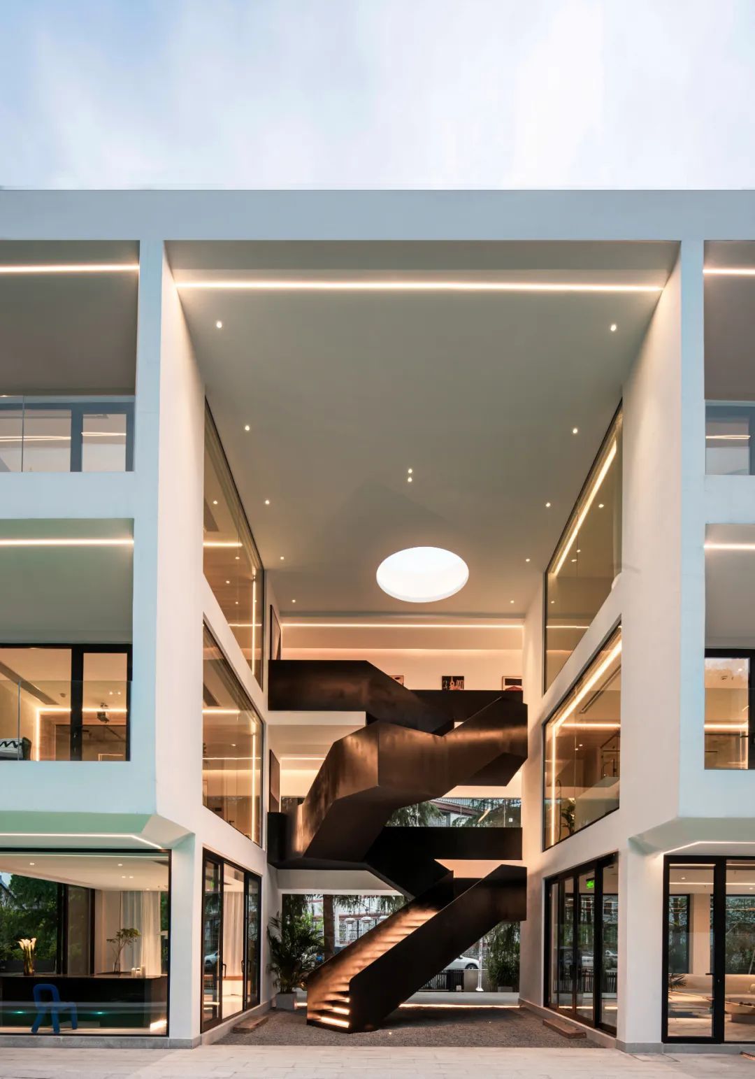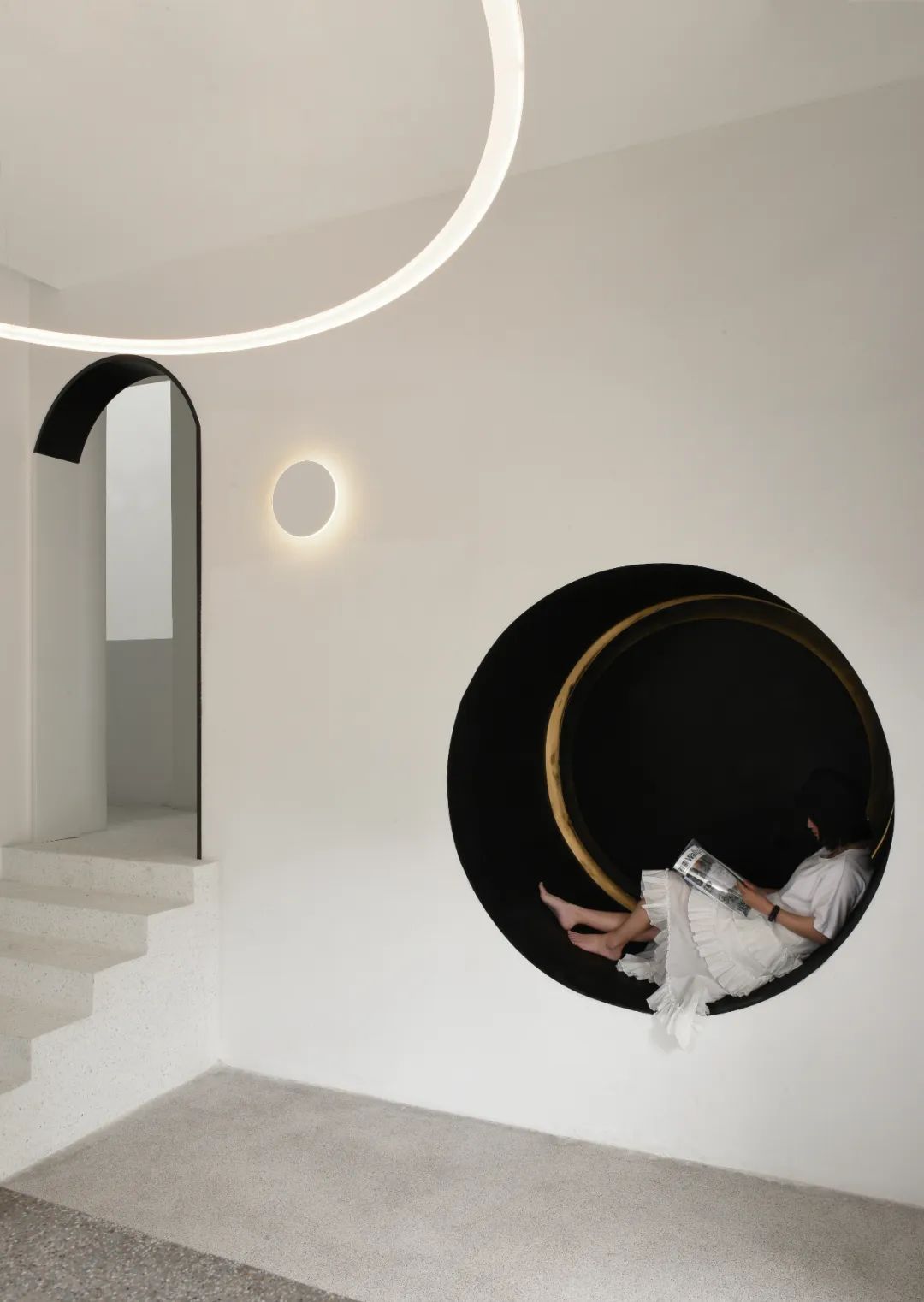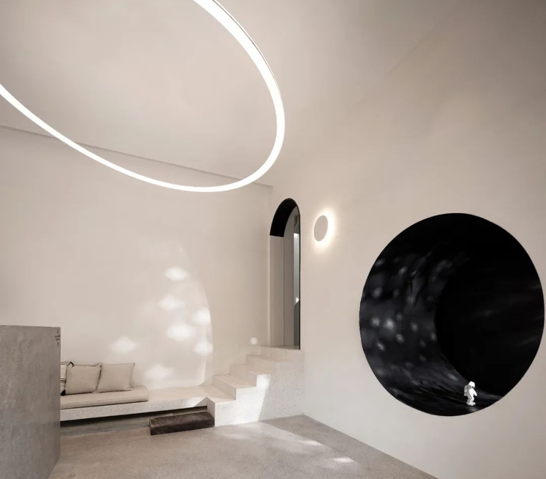 7. 流云乡墅·桐庐:位于上海浦东川沙新镇,以黑色为主色调,用体块穿插和洞穴弧形设计,打造自然空间。