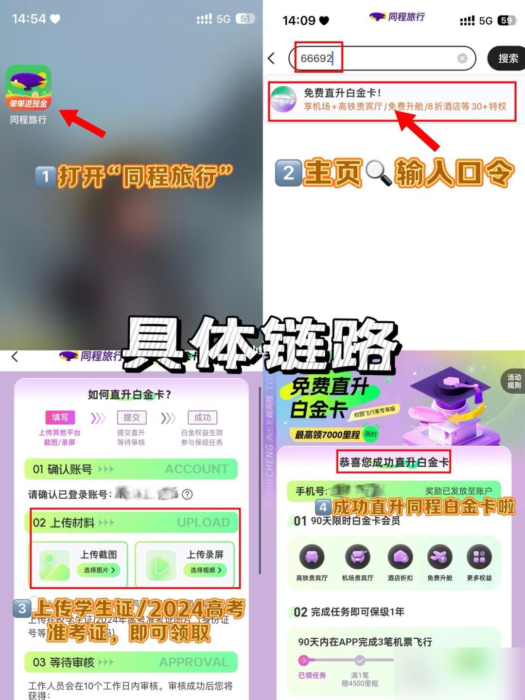大学生凭学生证、2024准考证可以限时直升同程白金卡!享30+项特权,覆盖酒店、火车票、机票、服务、生活权益,简直就是享有旅游一条龙优惠!