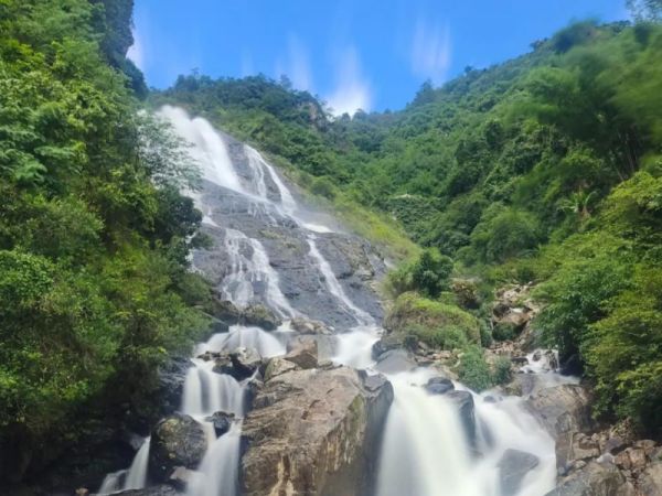 南恩瀑布是哀牢山上最大的天然瀑布,被环山公路从中间切开,巨大的水帘从天而降,重重地跌落在岩石之上,激起千万玉珠。