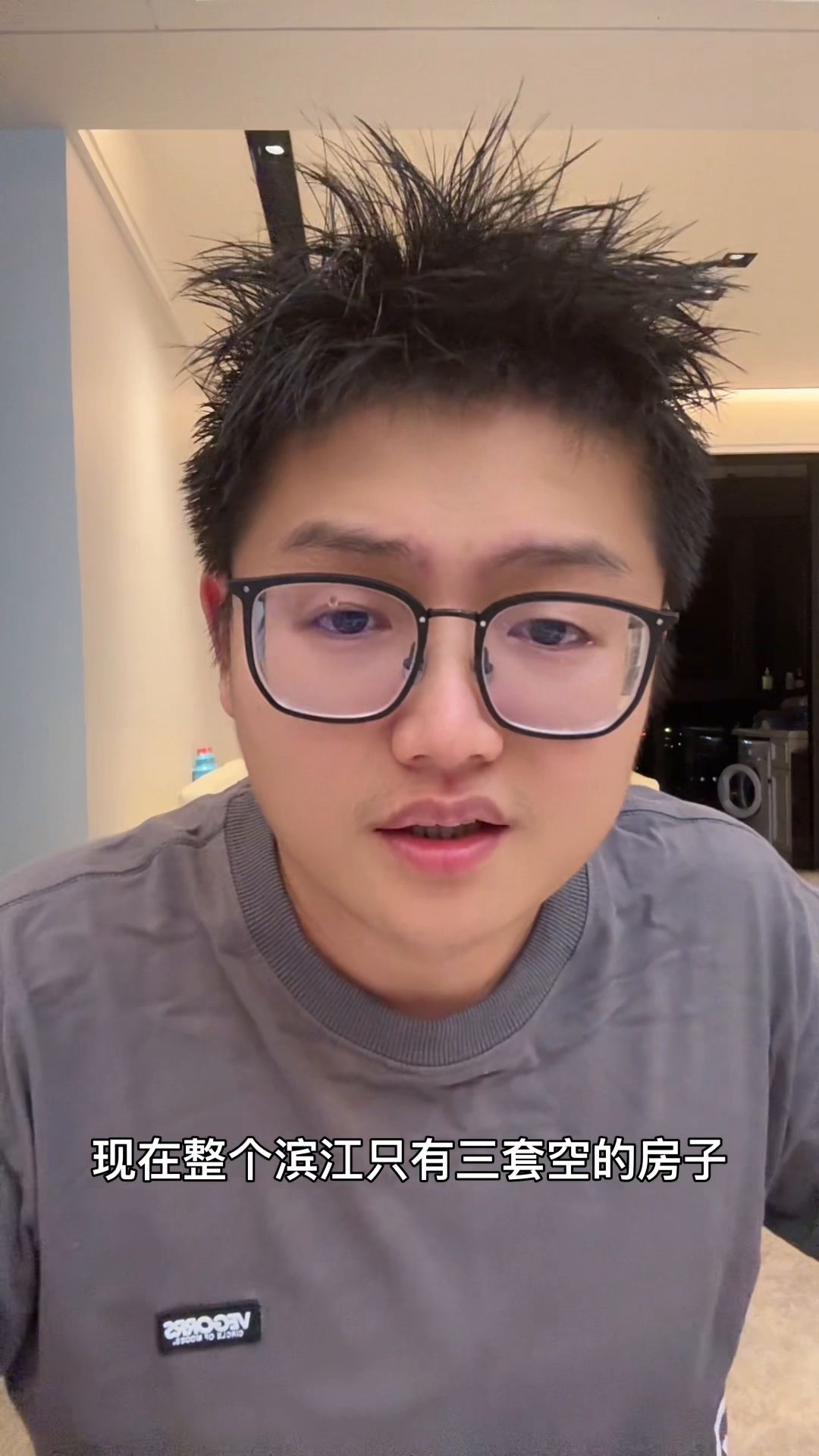 当我晚上8点多回来的时候,我说要不就定那个,人家说已经租出去了,就因为晚了两个小时,我租了一个60多万,就因为晚了两个小时房租多了25万,就这么夸张。而且如果不租很快就没了。他告诉你现在整个滨江只有三套空的房子,一点不是开玩笑。