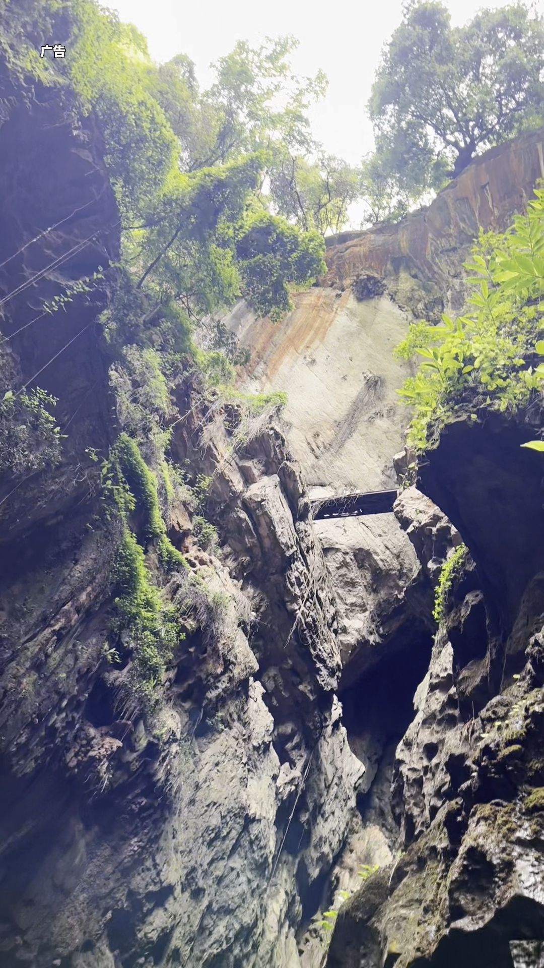6. 顺着溶洞入口往里走,首先你看到的是几十米高的深渊大峡谷,现场看要比视频上壮观的多。