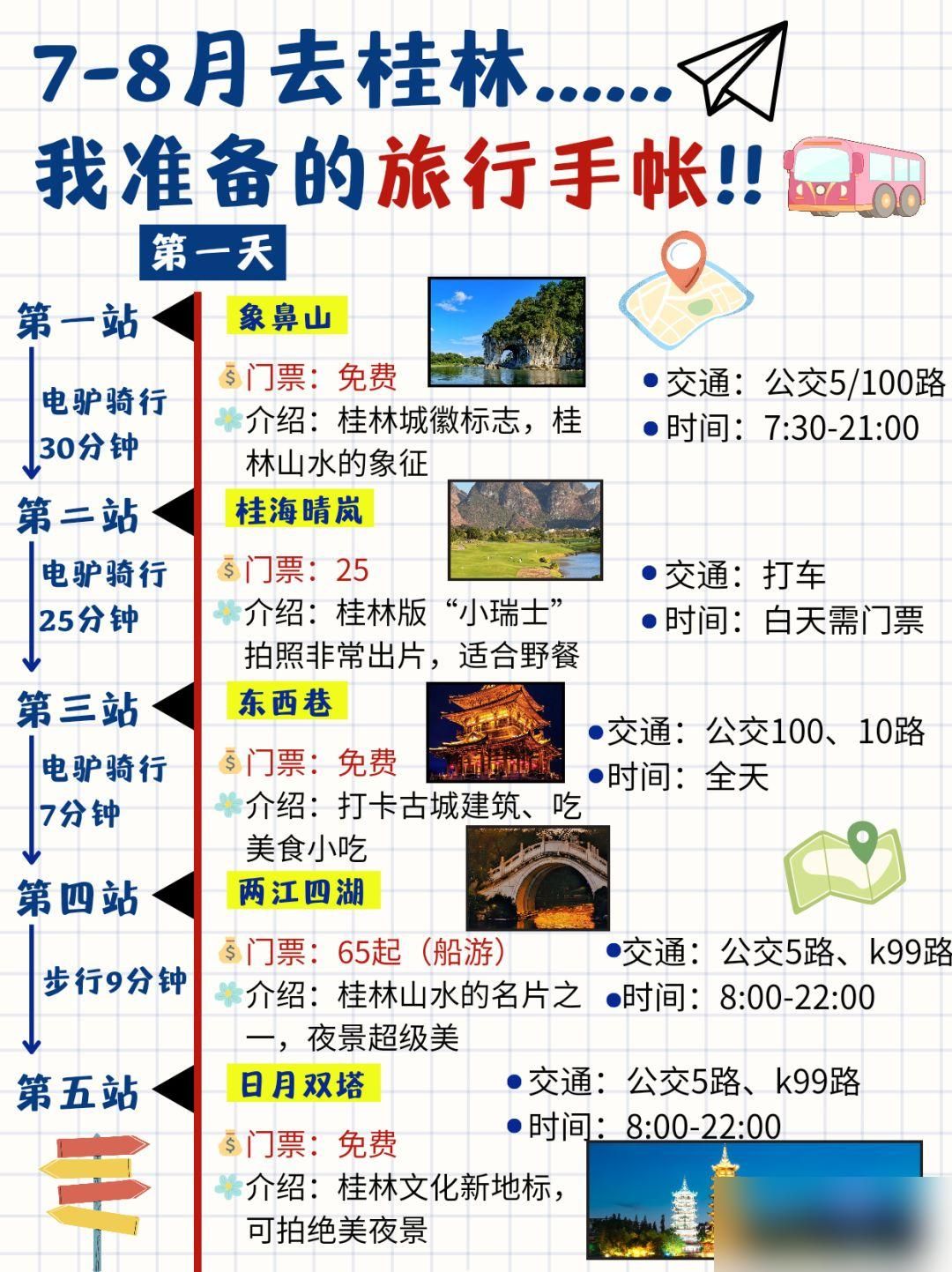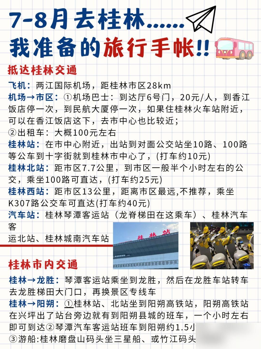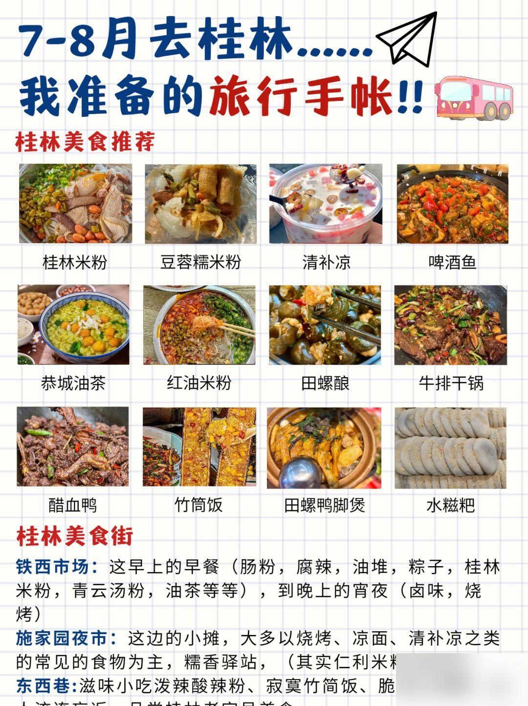 #周末去哪儿# 计划7-8月去桂林旅游玩几天,特地花了一天的时间给自己做了这份攻略,里边有行程安排、交通出行攻略,还有桂林美食,分享出来给大家看看,有需要的也可以拿去用哦