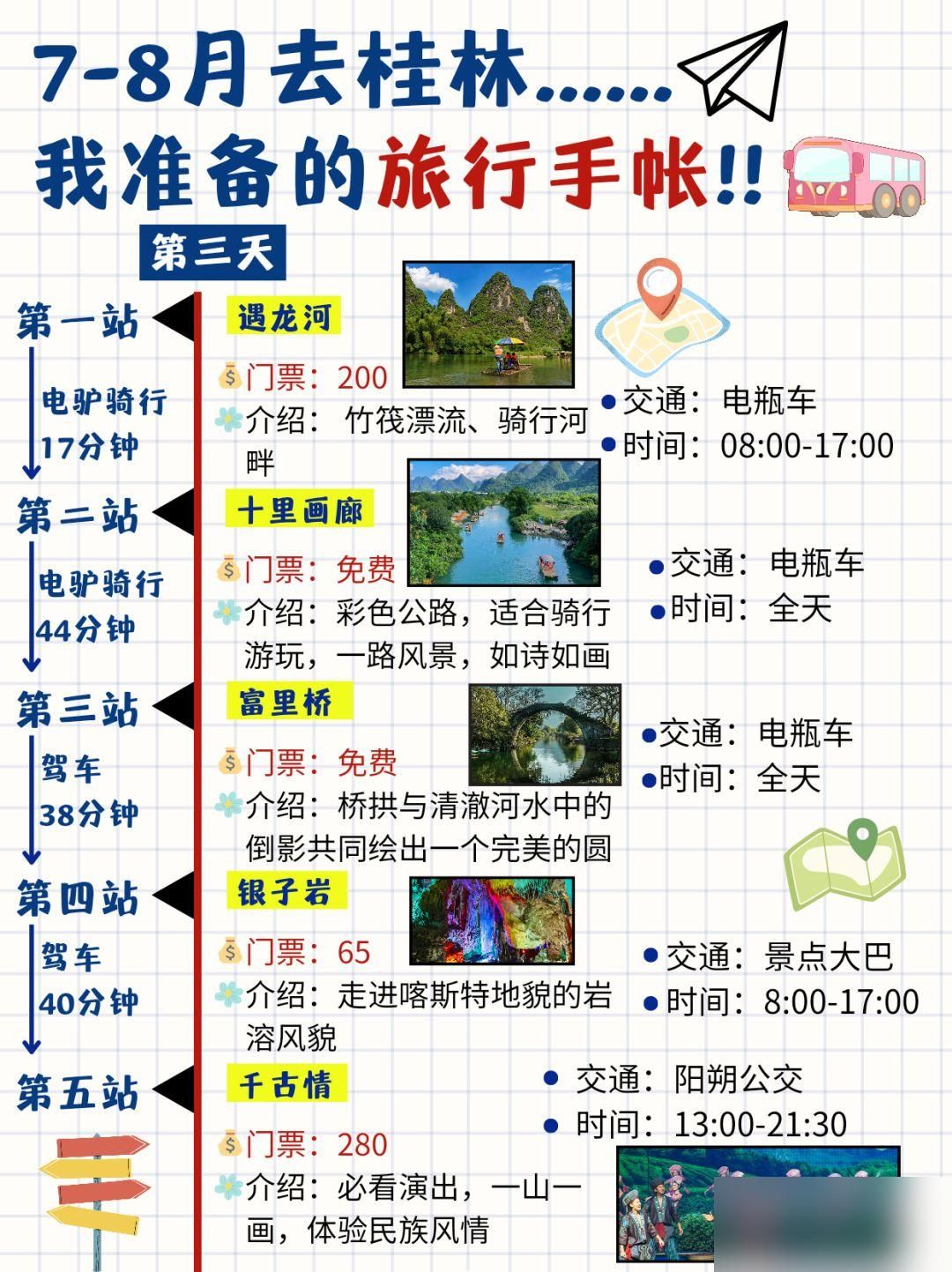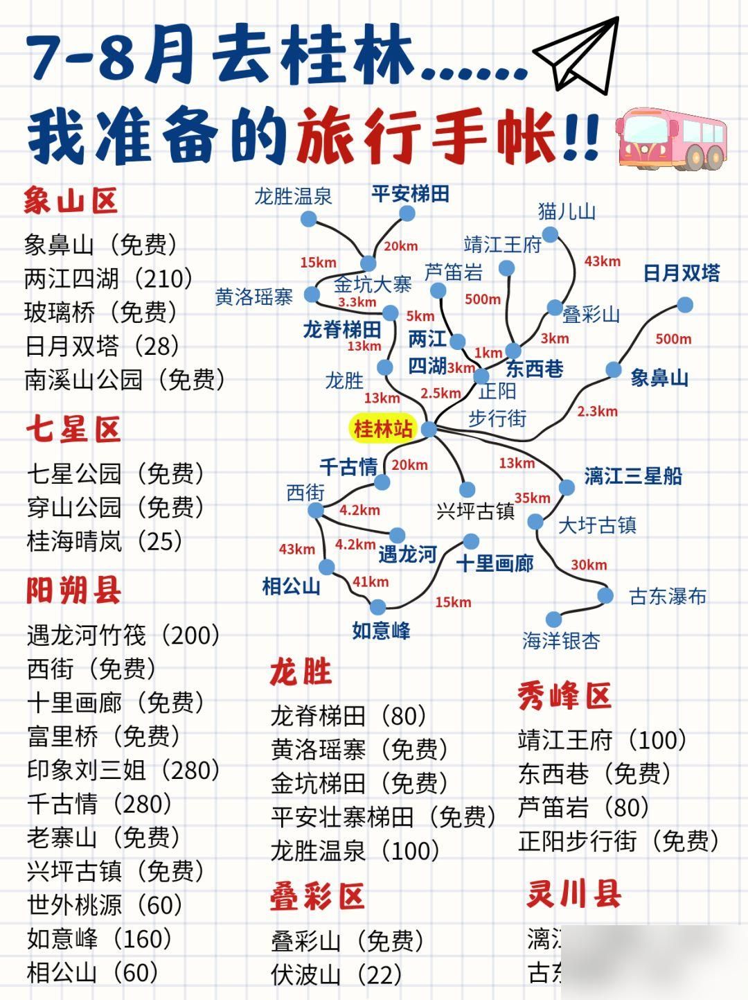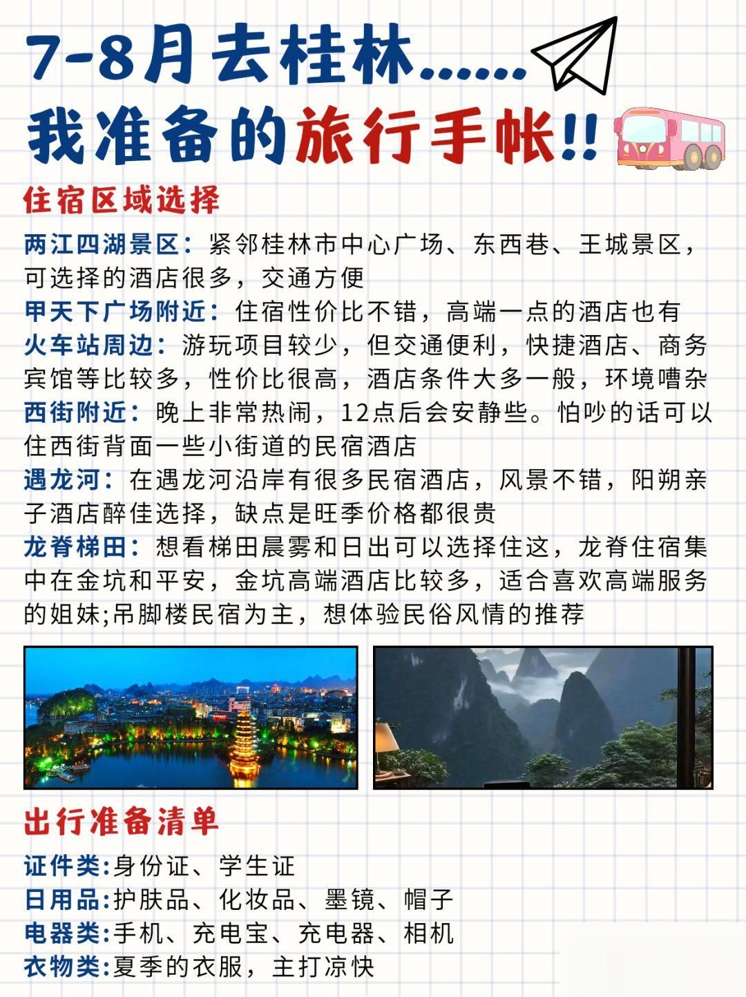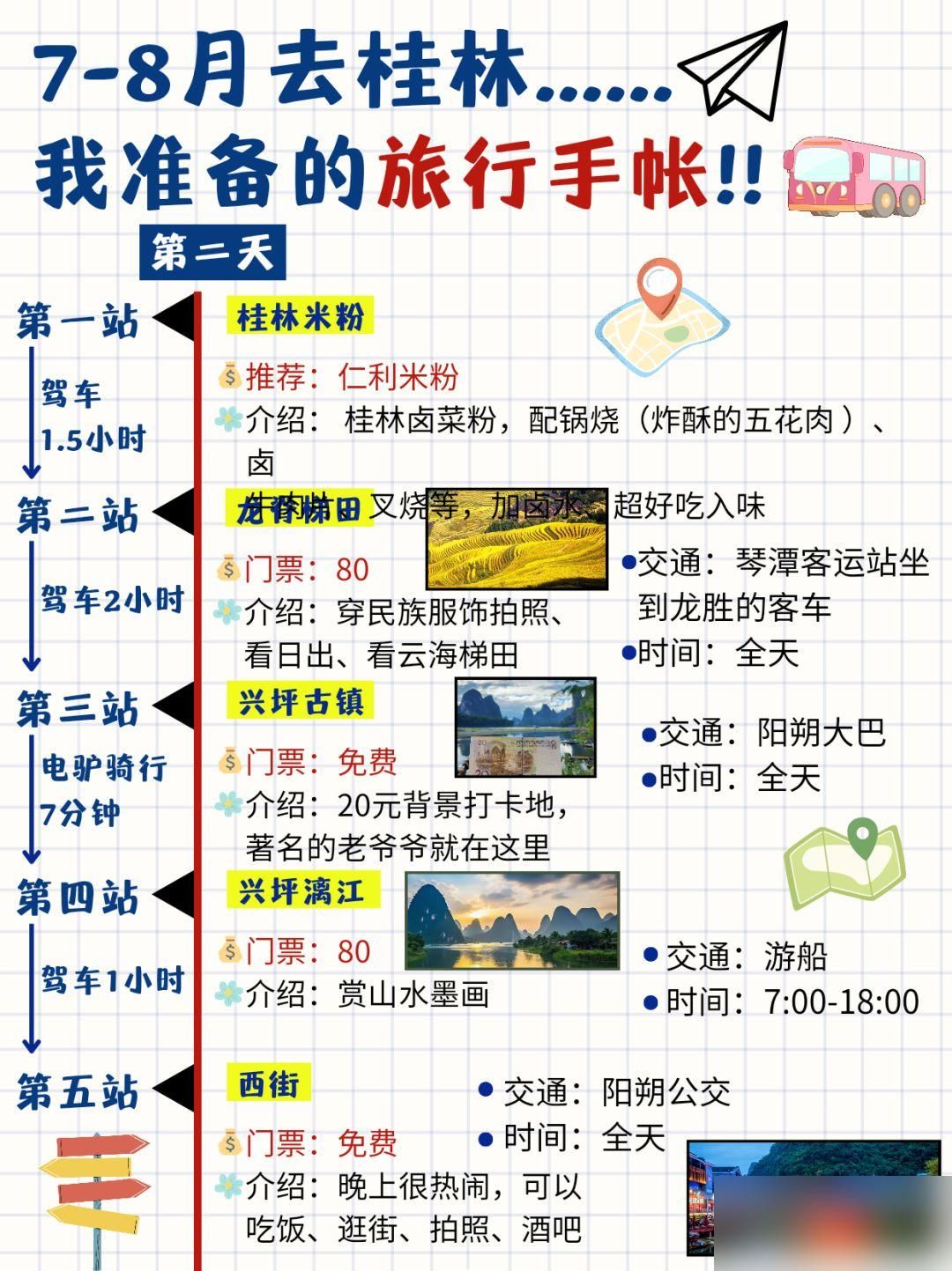 #周末去哪儿# 计划7-8月去桂林旅游玩几天,特地花了一天的时间给自己做了这份攻略,里边有行程安排、交通出行攻略,还有桂林美食,分享出来给大家看看,有需要的也可以拿去用哦