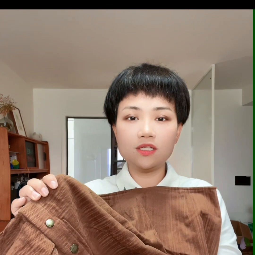 ·这是一条四位数的半裙,我入手才二十几米,非常的好看,很精美。下面做了一排荷叶边的设计,这里还有一排铆钉的设计,这个颜色也很好看,非常的百搭。而且这个面料,手感面料非常的好。这个裙子是适合春秋穿的。