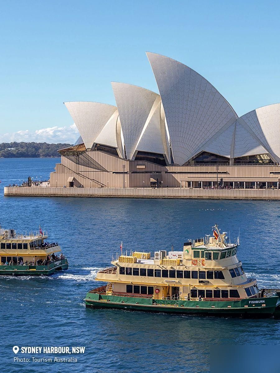 悉尼海港将海洋与城市相连。你可以前往环形码头(Circular Quay)搭个渡轮,体验悉尼人日常又美好的通勤方式;或者预定海港上的皮划艇体验,在水面上 get 与悉尼地标的人生合影