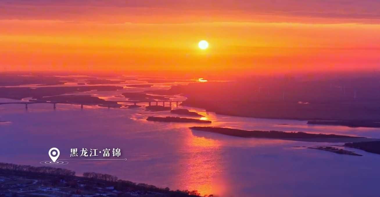 在黑龙江富锦的辽阔大地上,一场大自然的视觉盛宴正上演着。那里,红日缓缓西沉,落日的余晖像画家手中挥洒的颜料,将整个天空染成一片醉人的火红。松花江畔,人们驻足欣赏,仿佛置身于古诗中“长河落日圆”的绝美意境之中。