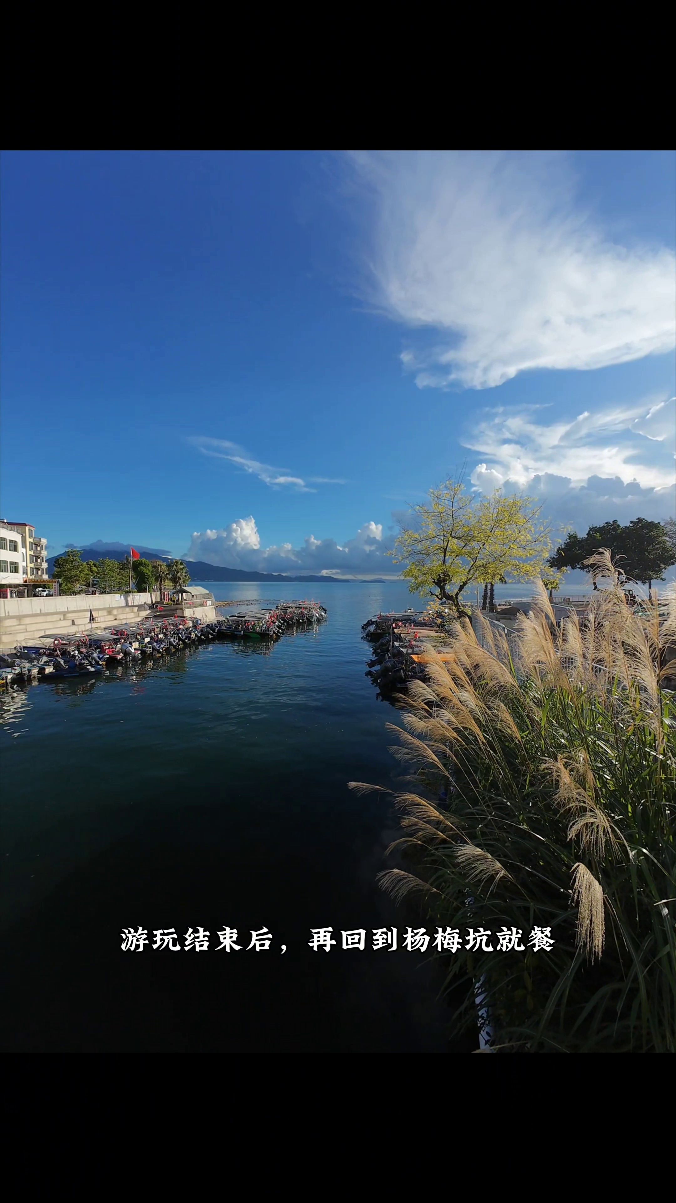 游玩结束后,再回到杨梅坑就餐,家常菜价格还是挺正常的。就餐之后,稍作休息,可以选择去杨梅坑沙滩游玩,这里可以游泳、玩水,坐海上摩托、坐快艇出海潜水,退潮时还可以赶海,推荐游玩一小时。