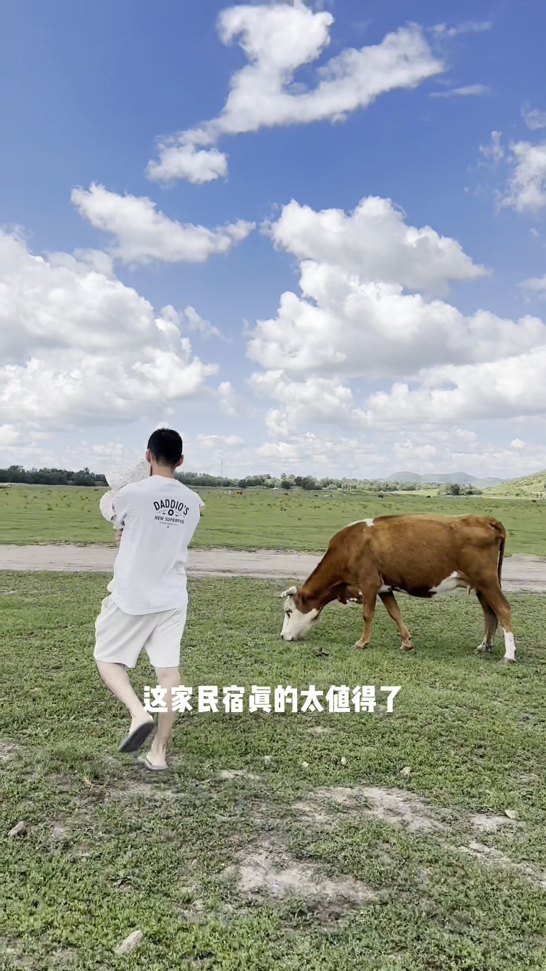 2. 爸爸,我要喝水。给我喝水。夏恩宝今日穿搭以保暖为主,因为早上还是有点凉。爸爸和夏恩宝在民宿外面浅浅溜达一下,荡秋千,我也做作地浅荡一下,其实是为了拍照。给夏恩宝带一下蒙古头饰,再带她来看一下这些小动物们。在蒙古包前面做作地摆拍一下,在这片草地溜达时有灵魂放空的感觉。不得不感叹,这家民宿真的太值得了,浅浅推荐一下。