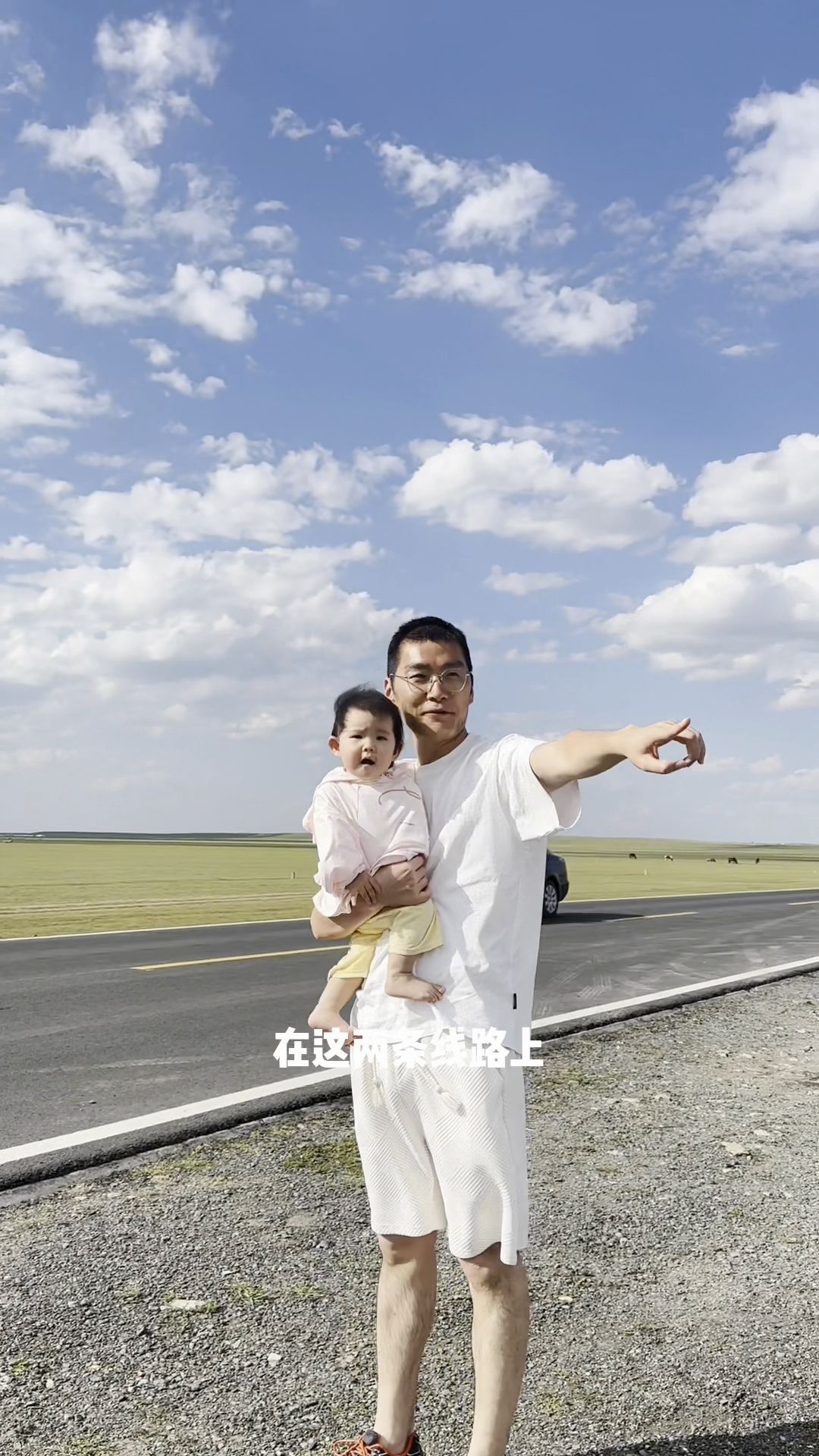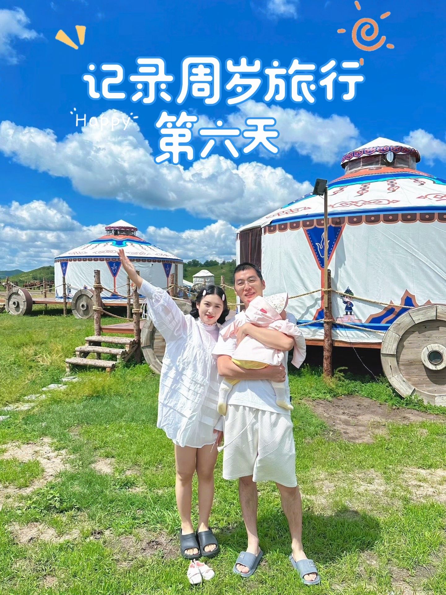 4. 夏恩宝醒啦,又来到蒙古包这边,她真的很喜欢爬各种台阶,可能这就是小孩子的乐趣。民宿老板娘在给我们做午饭,我们带着夏恩宝在外面继续玩耍,感受天空,感受草地。这次旅行夏恩宝是真的很给力也很乖,父女两个坐在这个椅子上,配上后面的风景,这一刻仿佛时间都静止了,世界变得美好起来,幸福感倍增。也许这就是带孩子出来旅行的意义。