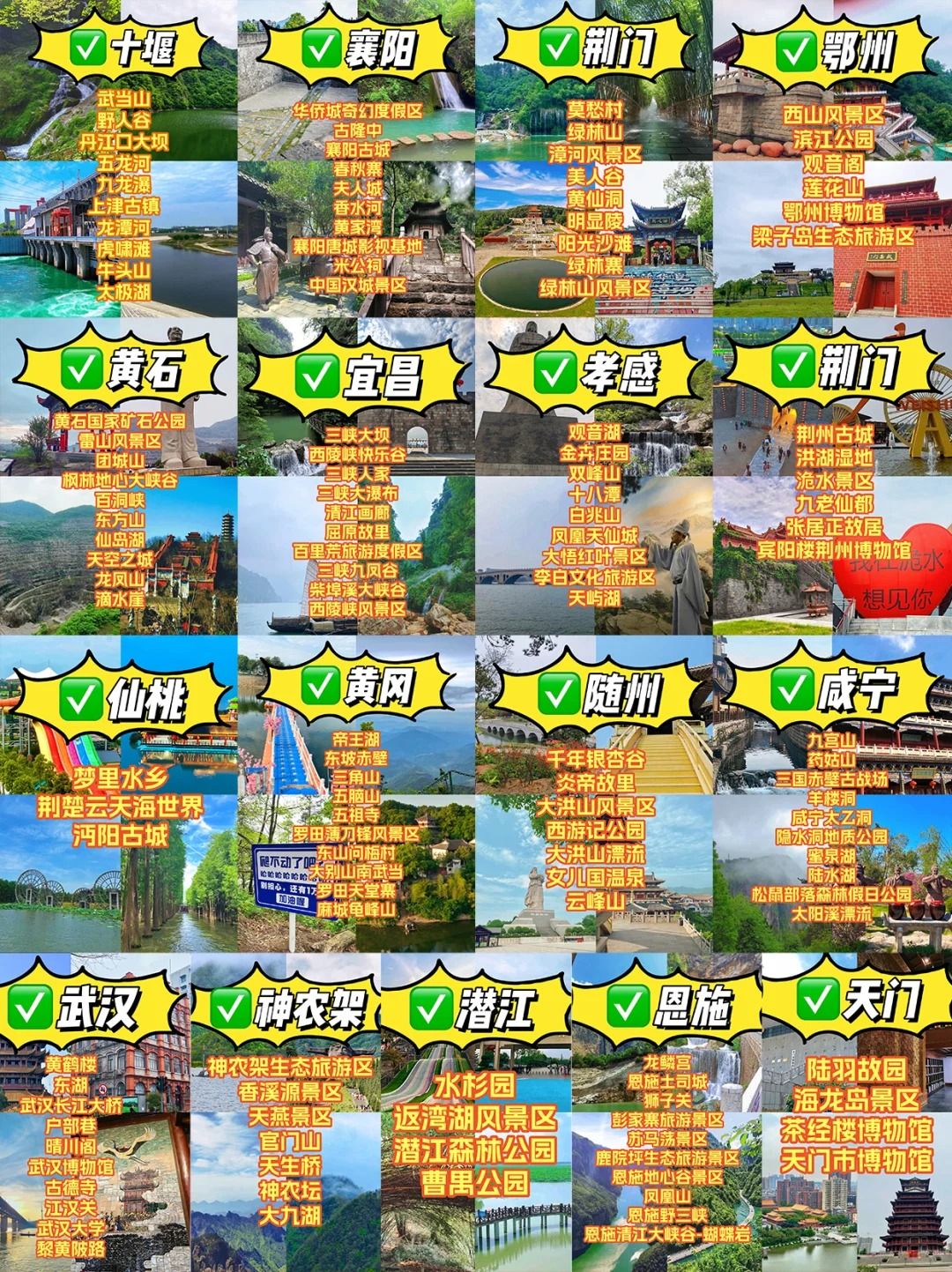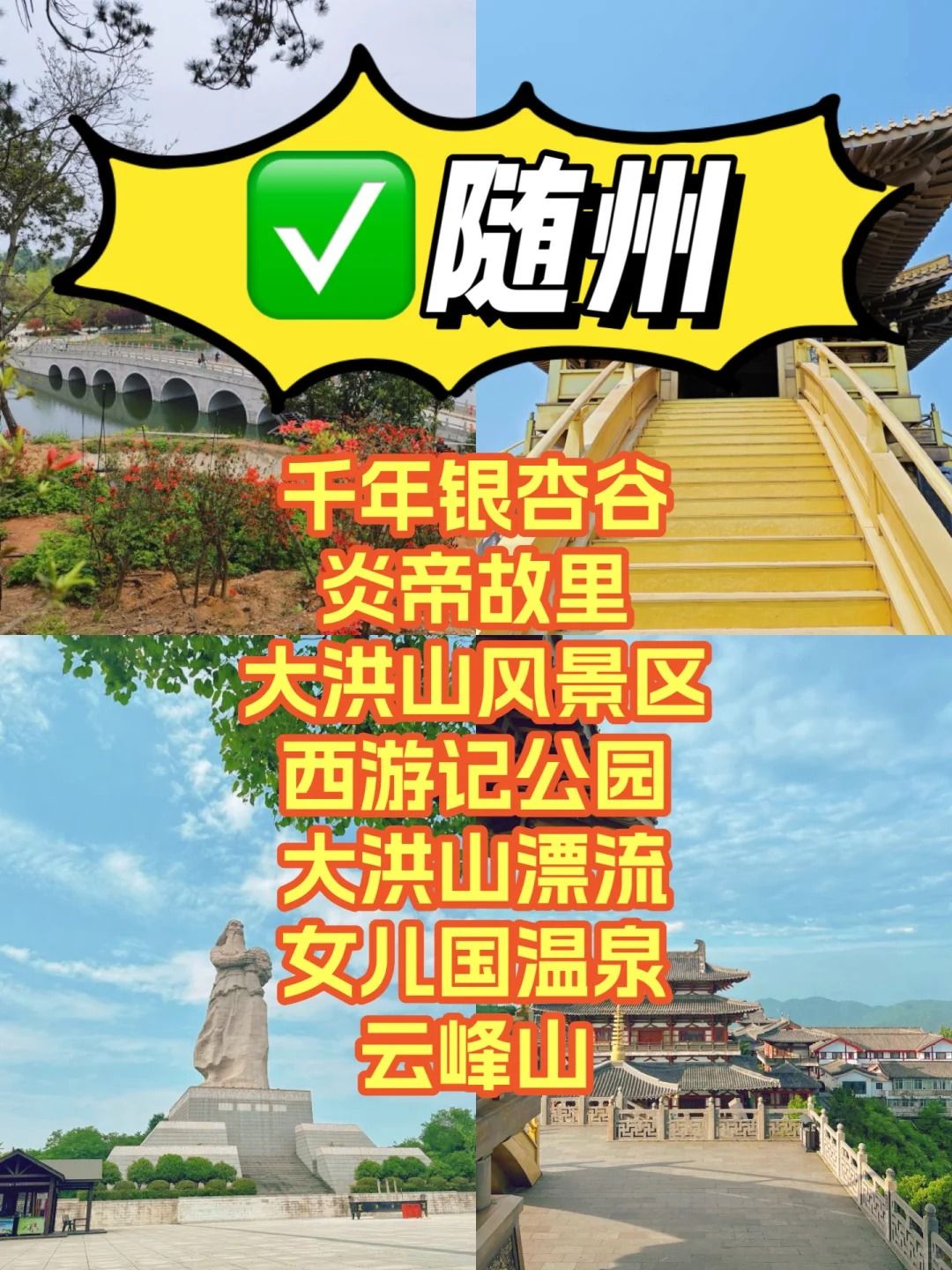 千年银杏谷,炎帝故里,大洪山风景区,西游记公园女儿国温泉,云峰山万亩茶园