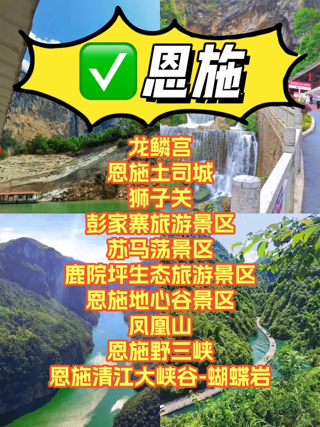 龙鳞宫,恩施土司城,狮子关,彭家寨,苏马荡景区,鹿院坪生态旅游景区,恩施地心谷