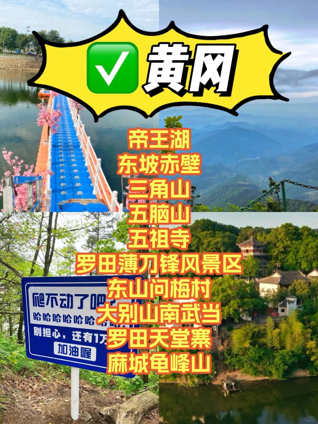 帝王湖,东坡赤壁,三角山,五脑山,五祖寺,罗田薄刀锋风景区,东山问梅村,大别山南武当,罗田天堂寨,麻城龟峰山