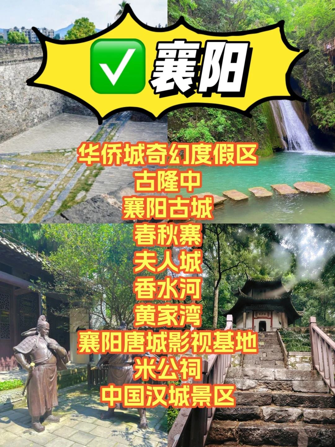 华侨城奇幻度假区,古隆中,襄阳古城,春秋寨,夫人城,香水河,黄家湾,襄阳唐城影视基地,米公祠,中国汉城景区