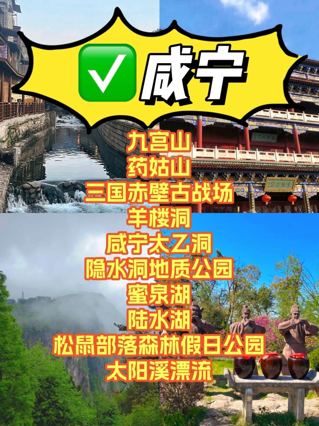 九宫山,三国赤壁古战场,羊楼洞,咸宁太乙洞,蜜泉湖,陆水湖,太阳溪漂流