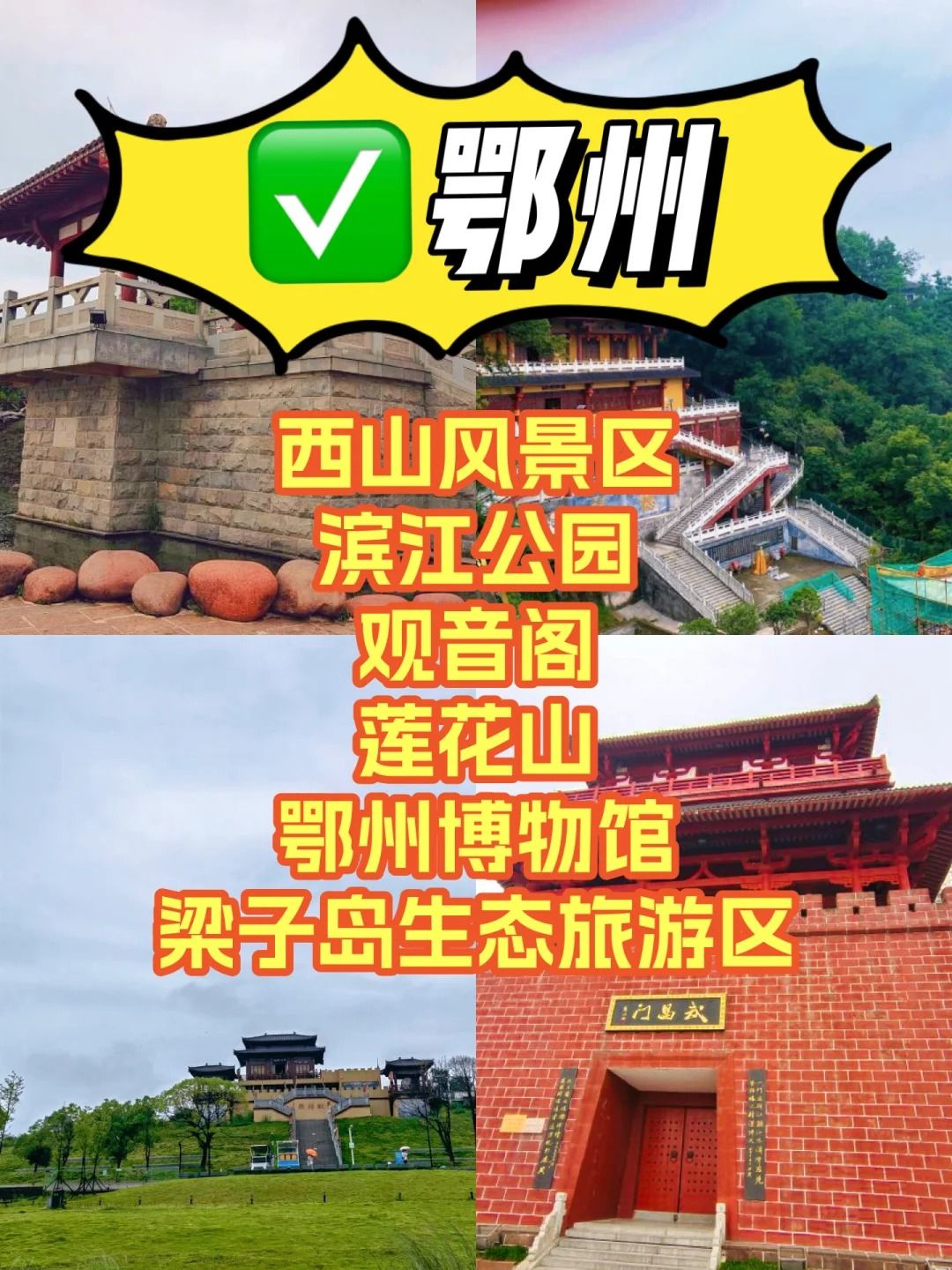 西山风景区,滨江公园,观音阁,莲花山,鄂州博物馆,梁子岛生态旅游区