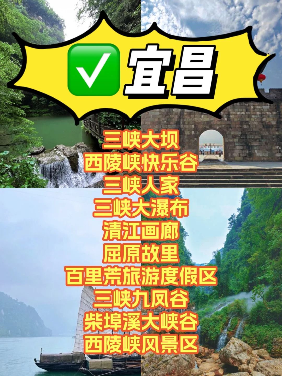 三峡大坝,西陵峡快乐谷,三峡人家,三峡大瀑布,清江画廊,屈原故里,百里荒旅游度假区,三峡九凤谷,柴埠溪大峡谷,西陵峡风景区