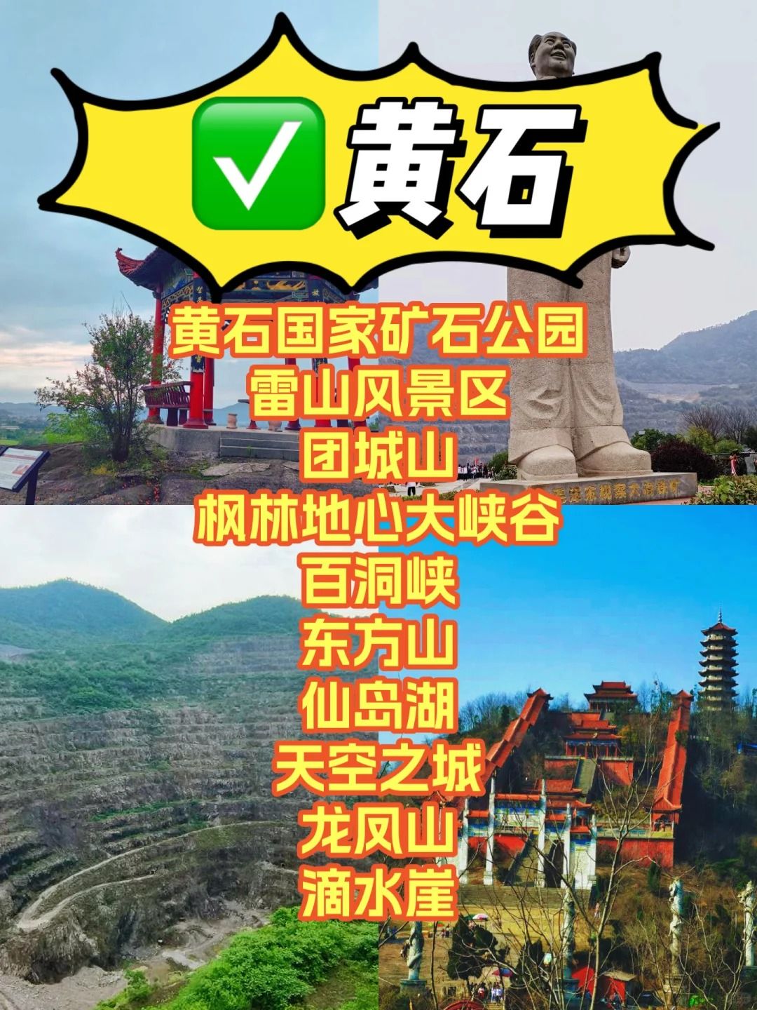 黄石国家矿石公园,雷山风景区,团城山,枫林地心大峡谷,百洞峡,东方山,仙岛湖,天空之城,龙凤山,滴水崖