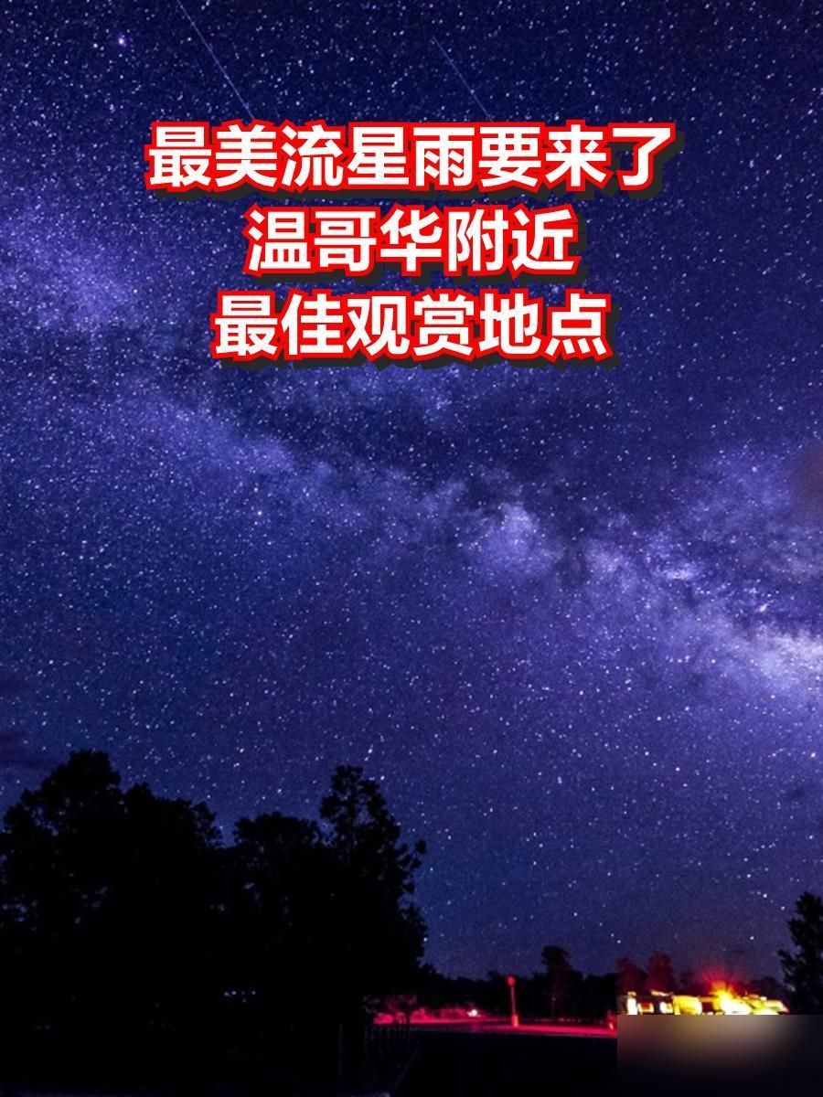在静谧的夜晚,带上草坪椅和沙滩椅,去光污染尽可能少的地方观赏流星雨吧。 以下是温哥华附近观赏星空和流星雨的最佳地点: