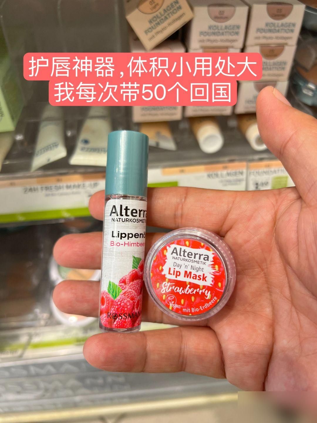 巨火的Alterra的唇膜和唇釉只在ROSSMANN超市里有,一定要买!体积小用处大,德国才3欧元,送闺蜜绝了,她能天天念叨你的好。