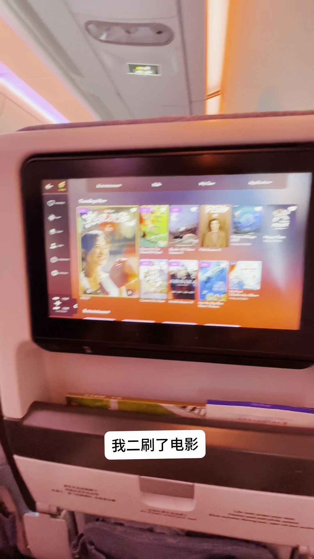 ·飞机上自带Wifi,可以用微信聊天。我二刷了电影,热辣滚烫,飞行8小时。