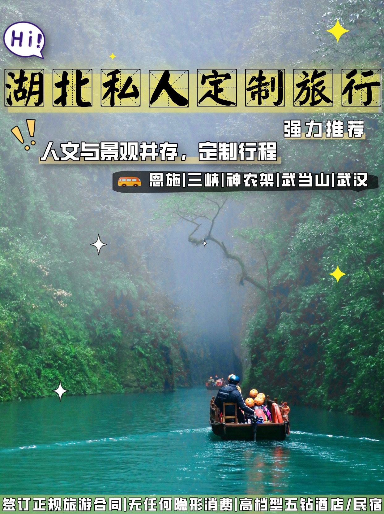 湖北之旅已经准备就绪,武汉、恩施、三峡、襄阳、神农架、武当山等地标性美景等待着你的探索不必担心拥挤的人群,也不会错过任何一处美景,因为在这个团队里,一切由你说了算