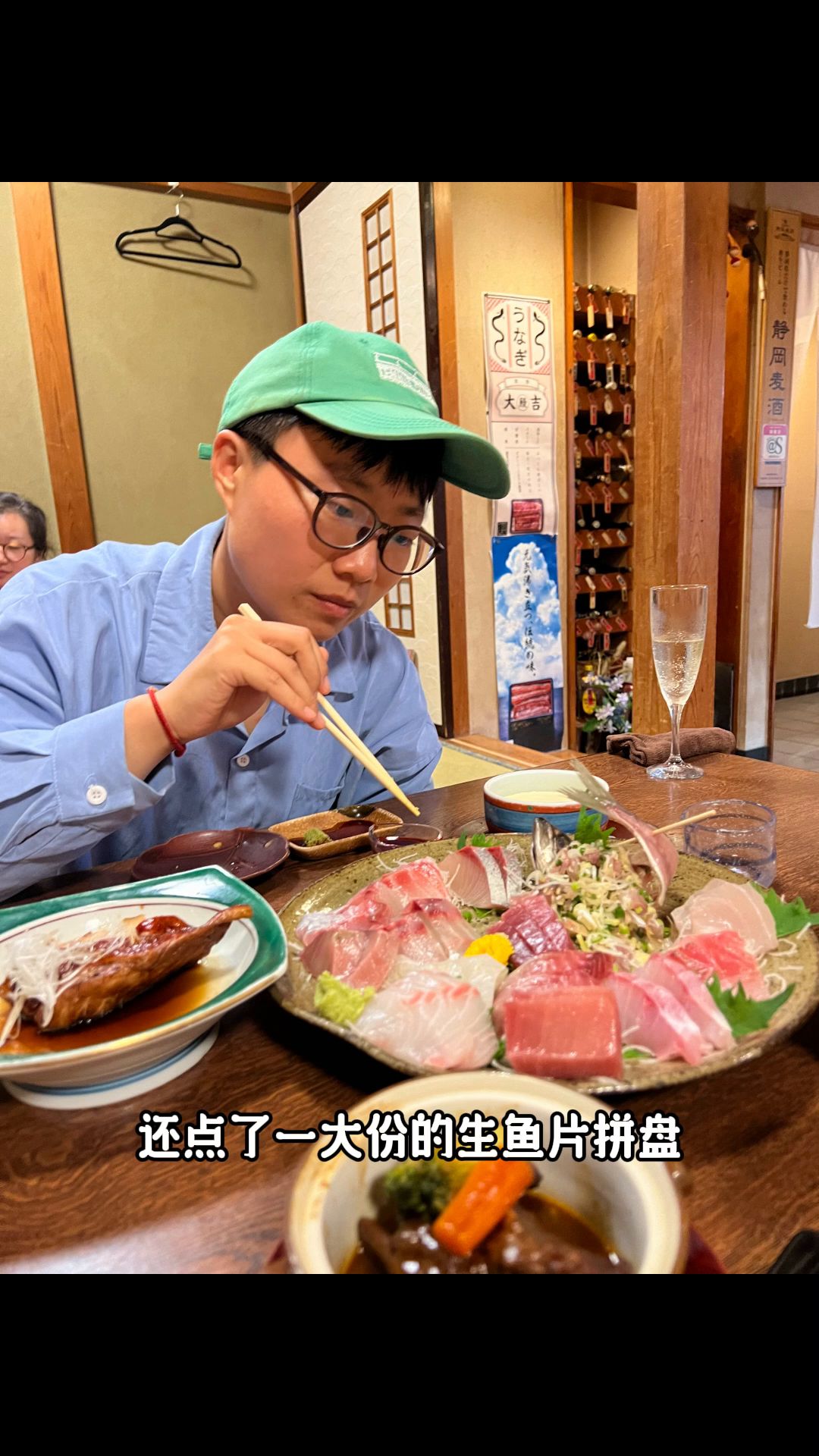 7. 点菜虽很多看不明白,但有探索精神。伊豆整只金目鲷是这样,但因想尝不同口味,就点了小份两种口味,一个是炭烤的,一个是酱烧的。还点了大份生鱼片拼盘,让老板推荐酒和甜品。当时店里几乎所有客人都讲中文,只有一位日本大叔独自喝酒,老板娘忙里忙外很亲切,沟通不了就用手机翻译。这家店除生鱼片还有串烧、盖饭等,不喜欢海鲜的朋友可尝试不同品类。这顿吃得很满意,两人花费 13000 日元左右。步行回酒店大概七八分钟,穿上酒店准备的衣服去泡温泉。