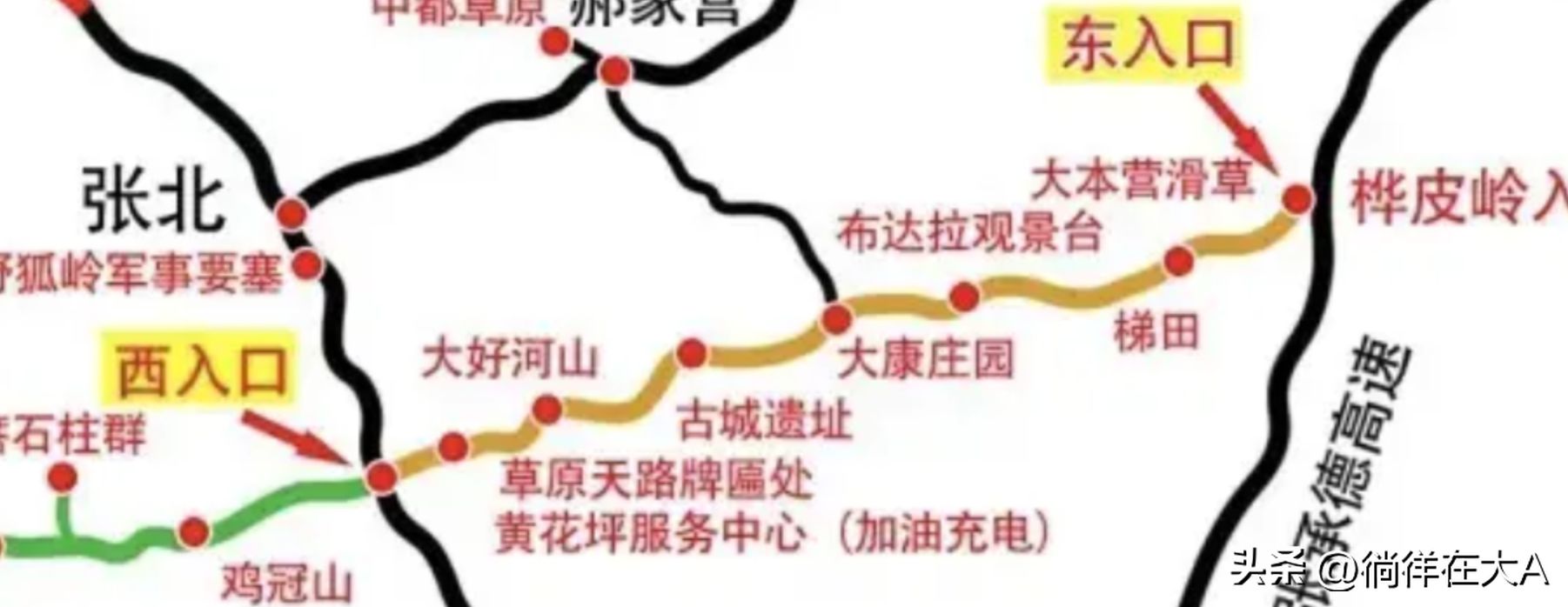 地处河北,紧邻北京,优点是距离较近,单程3个小时就能到,还有一条草原天路值得驾车游玩,一边是野狐岭,一边是桦皮岭,途中会路过云雾山森林公园、喇叭沟森林公园、北京密云天门山、神堂峪自然风景区等风景区。