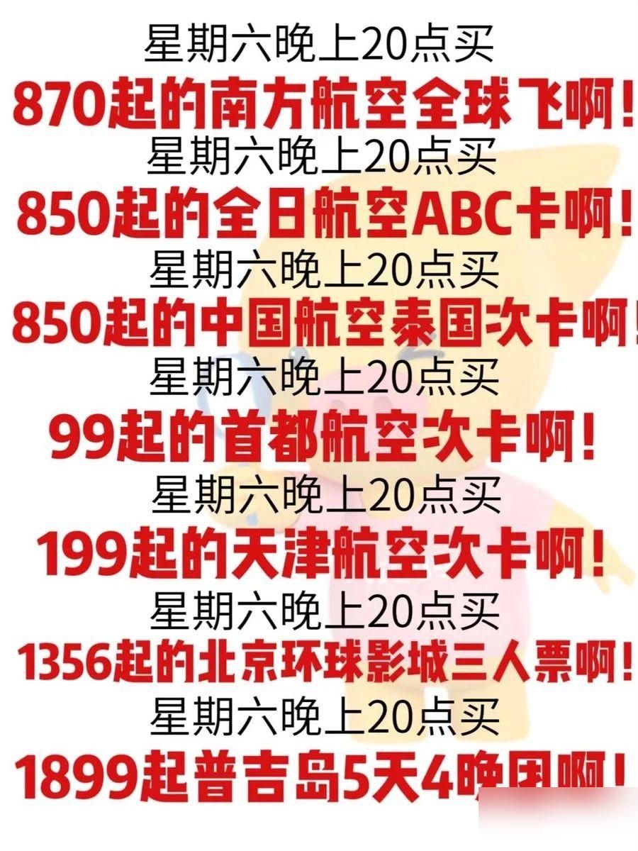机票相关看这里!各大航司随心飞、次卡,低至99
