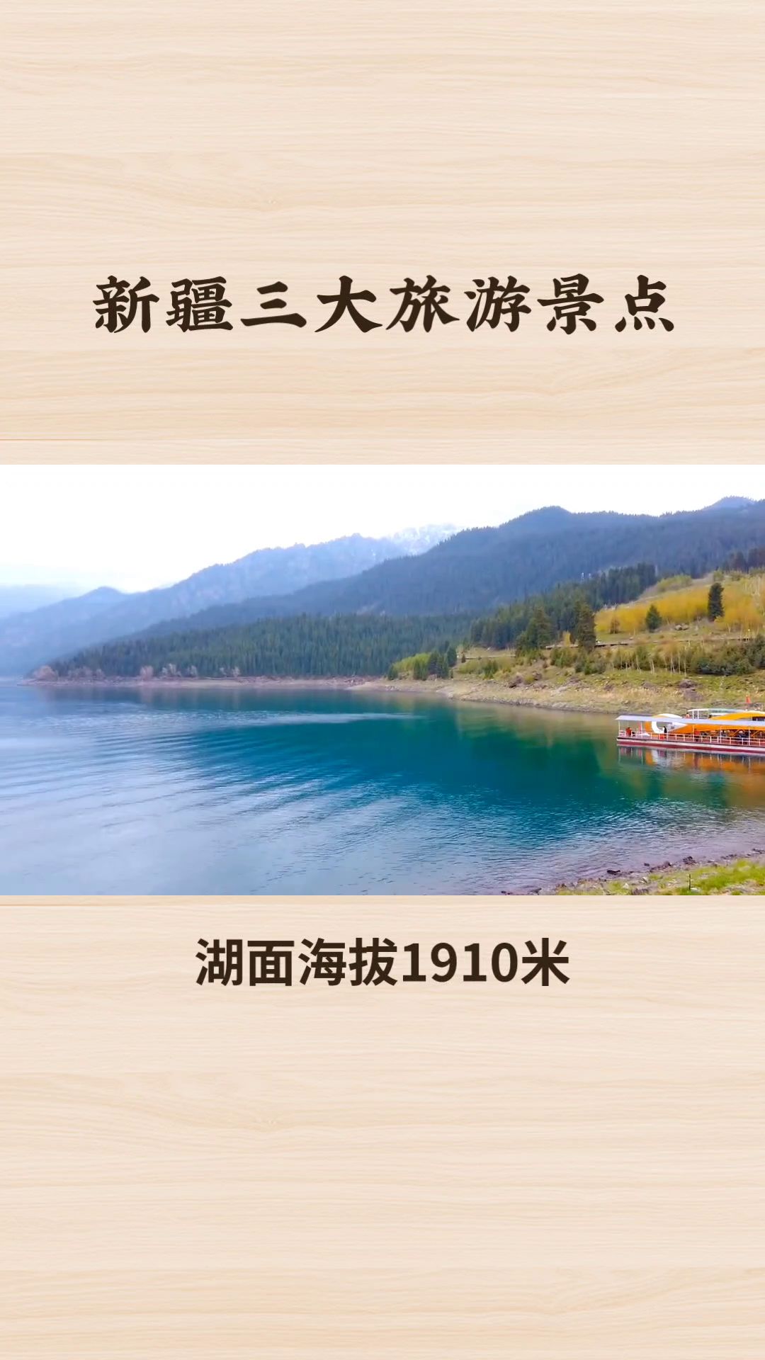 ·一、天山天池自然风光。天池是一处位于天山中部的高山湖泊,因其水色如玉,景色迷人而闻名。湖面海拔1910米,四周环山,风景如画。