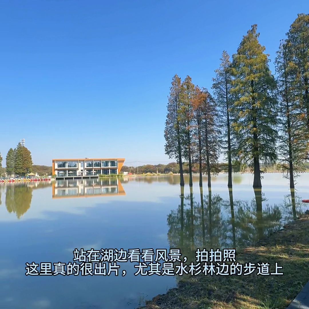 ·第二站导航鹅湖读书台。读书馆邻水而建,环境非常清静。里面有咖啡馆,可以在这里休息一下。站在湖边看看风景,拍拍照,这里真的很出片,尤其是水杉林边的步道上。