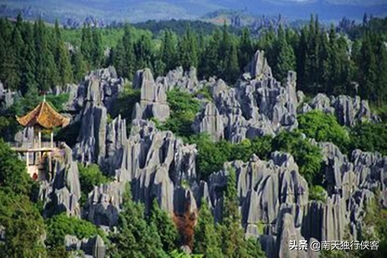 石林风景名胜区,位于路南县境内,距昆明市86千米,景区由大、小石林、乃古石林、大叠水、长湖、月湖、芝云洞、奇风洞7个风景片区组成。九乡溶洞是国家级风景区,地点位于昆明市宜良县,景区距离宜良有40多千米的路程。