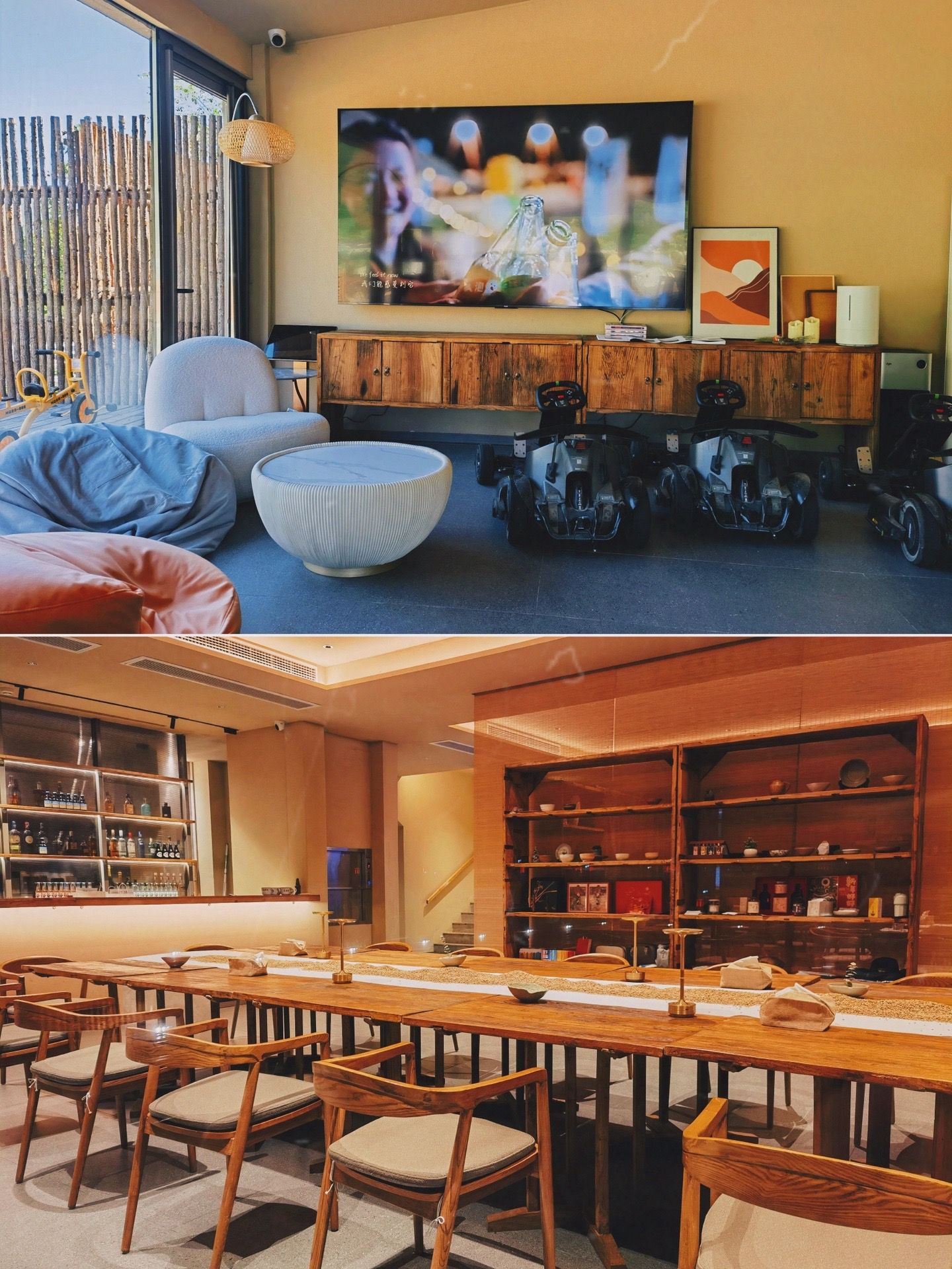 十二座小院以农历十二月古代雅称命名,很有诗意。客房空间很大,双床房配置,也可以让管家帮忙拼成一张大床,更方便带小朋友的亲子家庭。房内全套的米家智能体验,语音操控十分智能,每栋楼还有自己的客厅和餐厅,适合多个家庭周末小聚入住