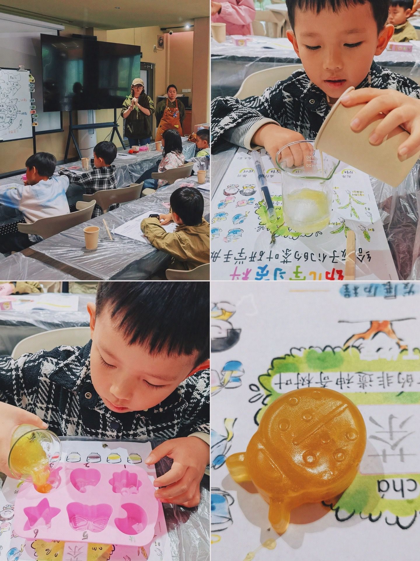 民宿有亲子研学活动,会根据时节安排不同内容。我们这次的活动主题是茶叶研学,学习了茶叶的相关知识并制作了手工茶皂,还去参观了茶园、采了茶叶、观摩了炒茶的过程,并将自己亲手采摘回来制成的茶叶带回了家,小朋友们成就感满满
